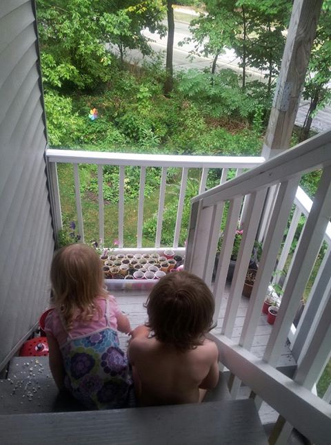 Dinner at Aunt Fideles' house. Only way to get R out back after washing hands is "I bet you can't catch me!"
