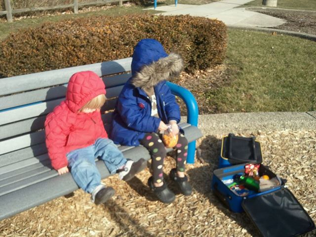 F (on top of a toy train, being dragged around by R): I'm getting towed!
