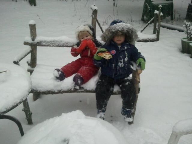 F: Daddy, while you and Mommy were sleeping last night, R and I woke up. And we went [screaming noise] and spun around. Then we pretended the kitchen was outside and we went there. And we looked at the sink and saw a monster. So we went [screaming noise, yet somehow a different one] and crawled back into bed.